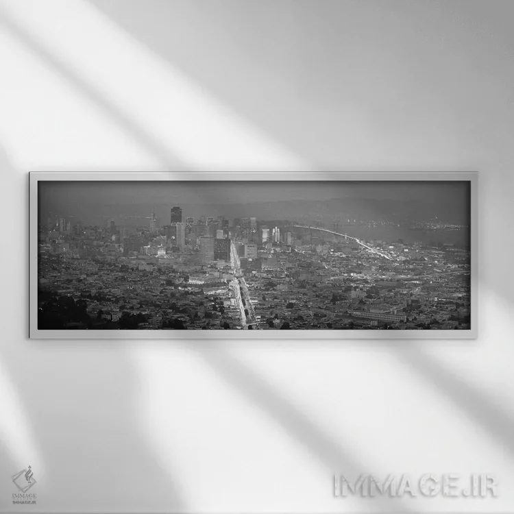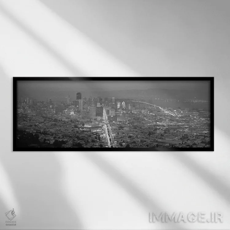 تابلو نمای پانورامای آسماننمای سانفرانسیسکو (غروب سیاه و سفید) اثر هنرمند ناشناس