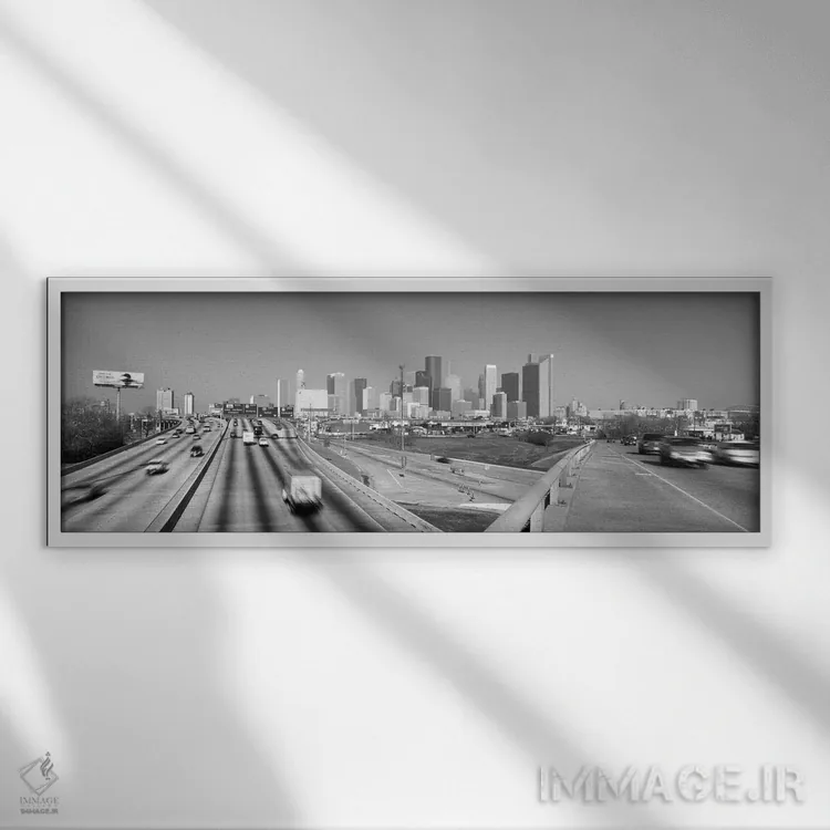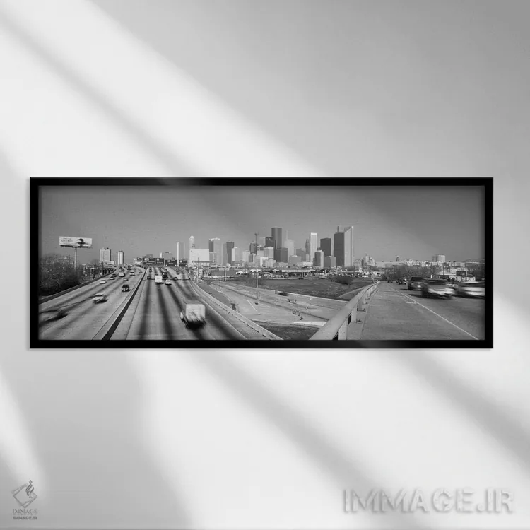 تابلو نمای پانورامای آسمان‌نمای هیوستون (سیاه و سفید) اثر هنرمند ناشناس - نمای روبه‌رو روی دیوار