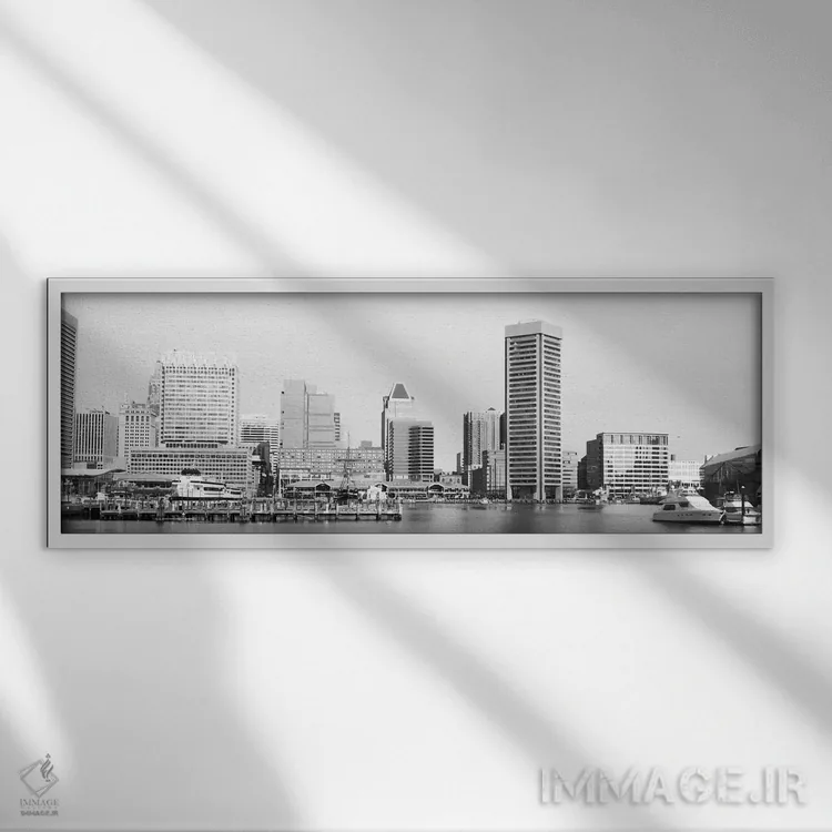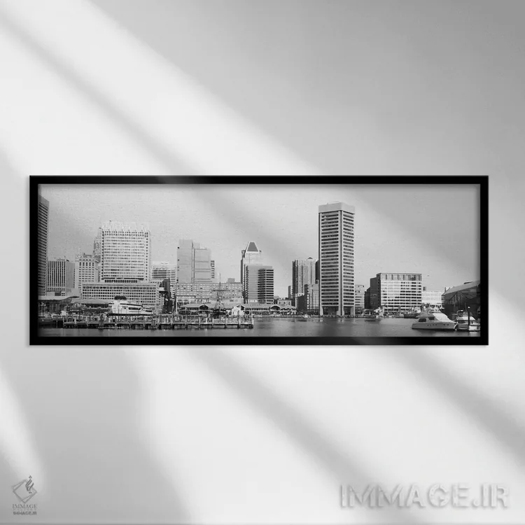 تابلو نمای پانورامای آسمان‌نمای بالتیمور (سیاه و سفید) اثر هنرمند ناشناس