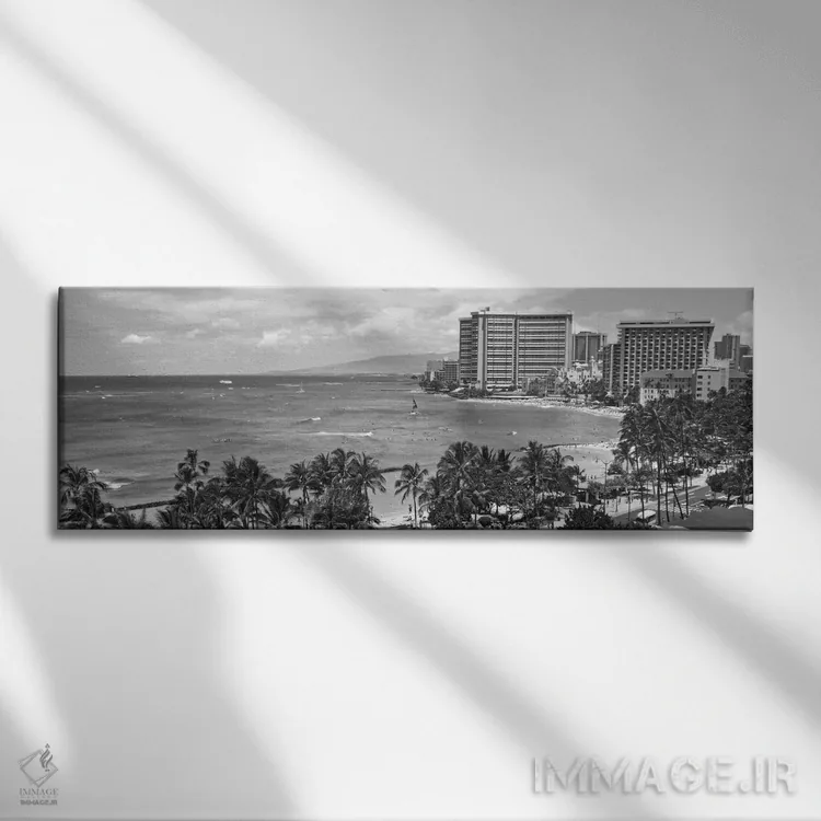 تابلو نمای پانورامای آسماننمای هونولولو (سیاه و سفید) اثر هنرمند ناشناس