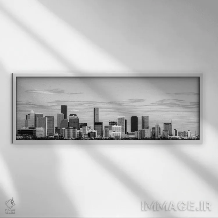 در «نمای پانورامای آسماننمای هیوستون (سیاه و سفید)»، اثرِ «هنرمند ناشناس» این اثر را با زبان سیاهوسفید ارائه میکند؛ برای دکورهای کلاسیک—مدرن یک انتخاب مطمئن و هماهنگپذیر است.