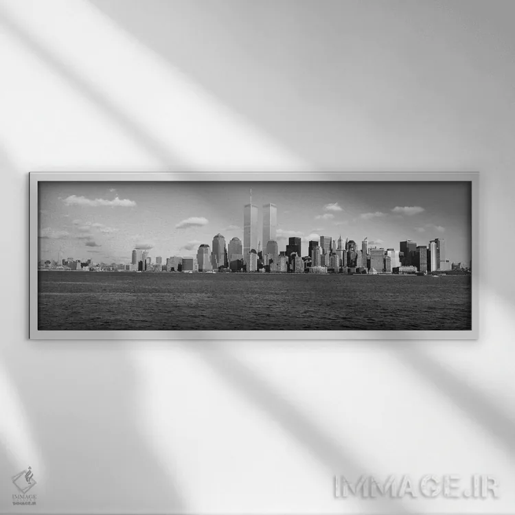 «نمای پانورامای آسماننمای نیویورک (سیاه و سفید)» اثرِ «هنرمند ناشناس» در فضای عکاسی سیاهوسفید، روی نور و کنتراست تکیه میکند؛ موضوعِ این اثر برای دکورهای مینیمال عالی است.