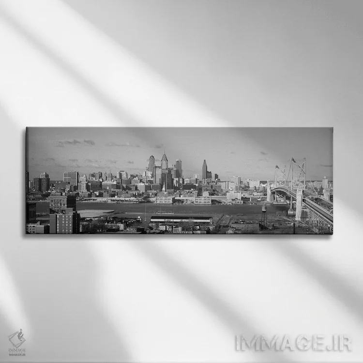 تابلو منظرهٔ گستردهٔ آسماننمای فیلادلفیا (سیاه و سفید) اثر هنرمند ناشناس
