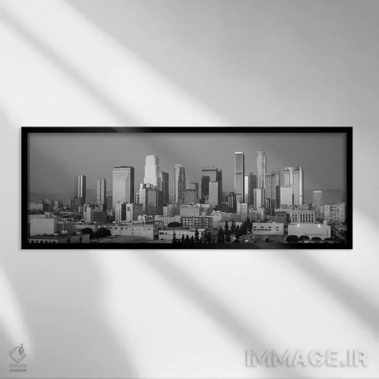 در «منظرهٔ گستردهٔ آسماننمای لسآنجلس (سیاه و سفید)»، اثرِ «هنرمند ناشناس» این اثر را با زبان سیاهوسفید ارائه میکند؛ برای دکورهای کلاسیک—مدرن یک انتخاب مطمئن و هماهنگپذیر است.