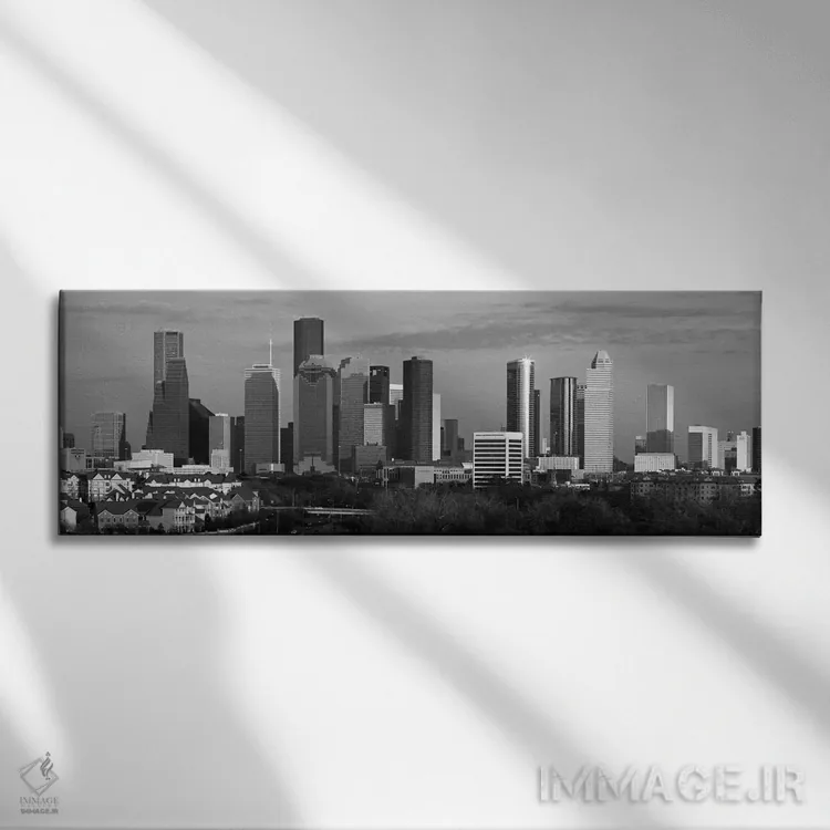 تابلو منظرهٔ گستردهٔ آسماننمای هیوستون (سیاه و سفید) اثر هنرمند ناشناس