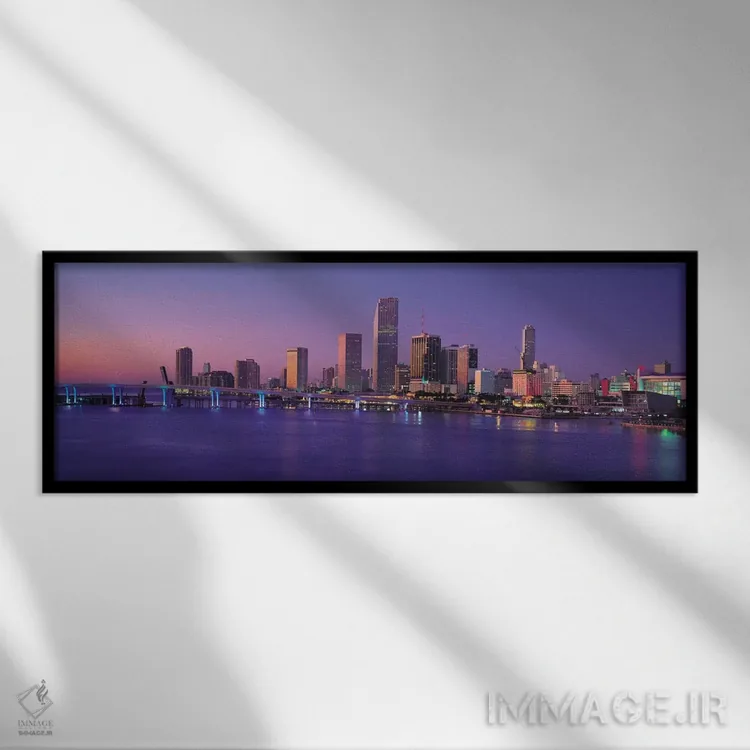 تابلو منظرهٔ گستردهٔ آسمان‌نمای میامی (عصر) اثر هنرمند ناشناس - نمای روبه‌رو روی دیوار