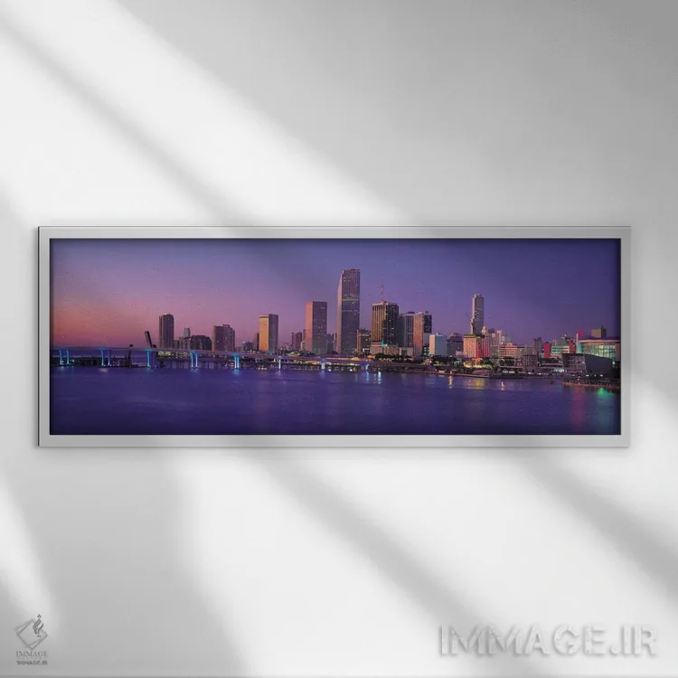 تابلو منظرهٔ گستردهٔ آسمان‌نمای میامی (عصر) اثر هنرمند ناشناس