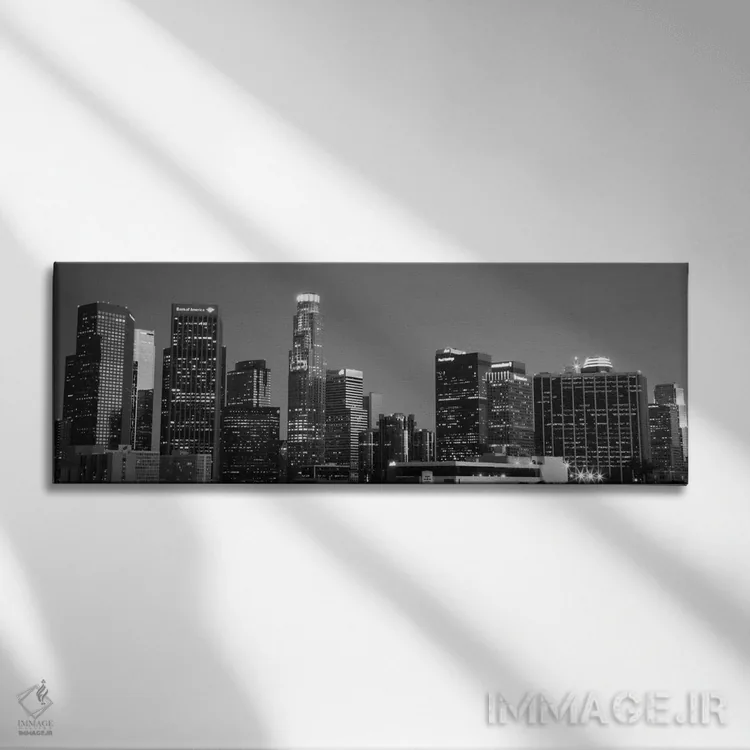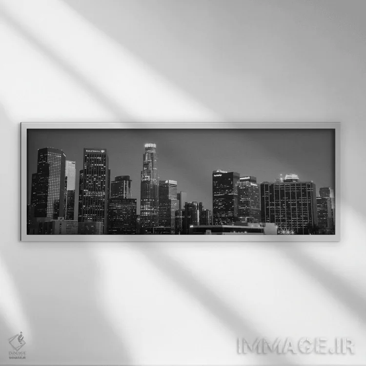 تابلو منظرهٔ گستردهٔ آسمان‌نمای لس‌آنجلس (سیاه و سفید) اثر هنرمند ناشناس