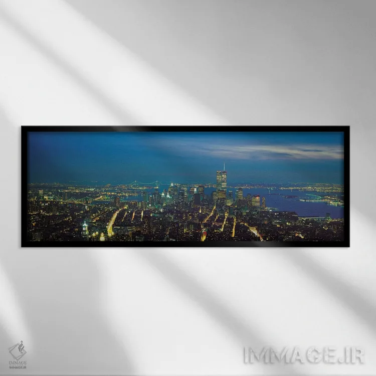تابلو منظرهٔ گستردهٔ آسماننمای نیویورک (شب) اثر هنرمند ناشناس