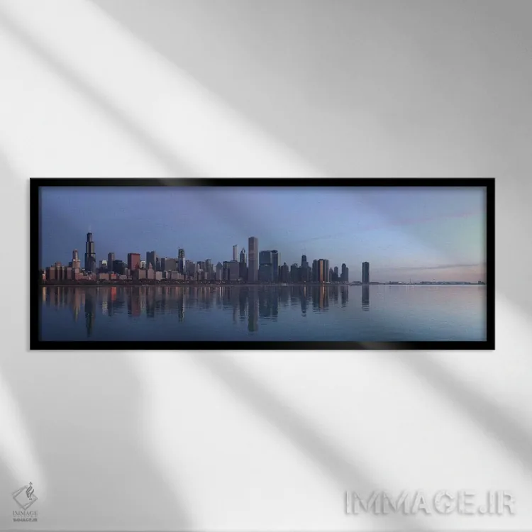 تابلو منظرهٔ گستردهٔ آسماننمای شیکاگو (طلوع) اثر هنرمند ناشناس