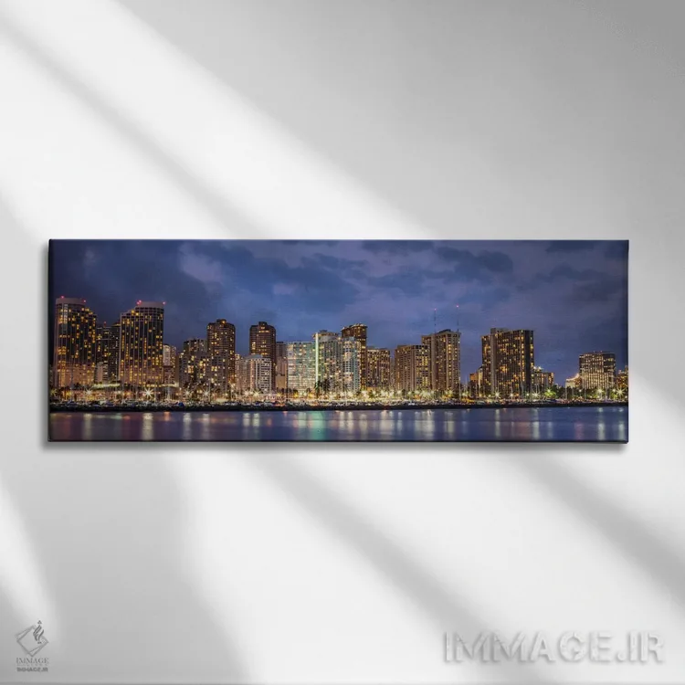 تابلو منظرهٔ گستردهٔ آسماننمای هونولولو (غروب) اثر هنرمند ناشناس