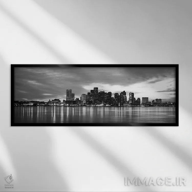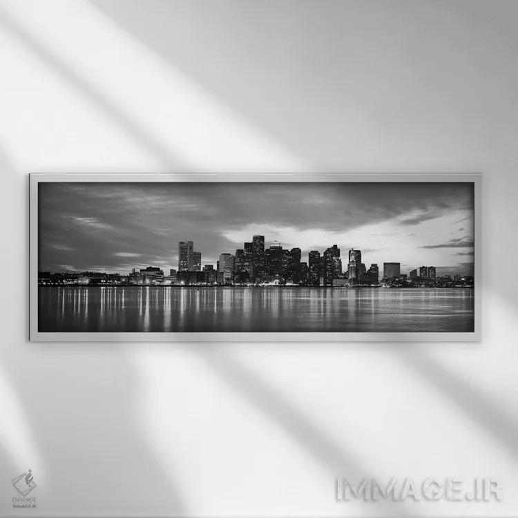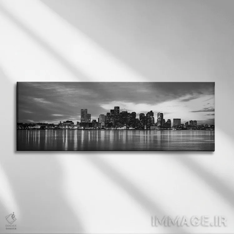 تابلو منظرهٔ گستردهٔ آسماننمای بوستون (سیاه و سفید) اثر هنرمند ناشناس