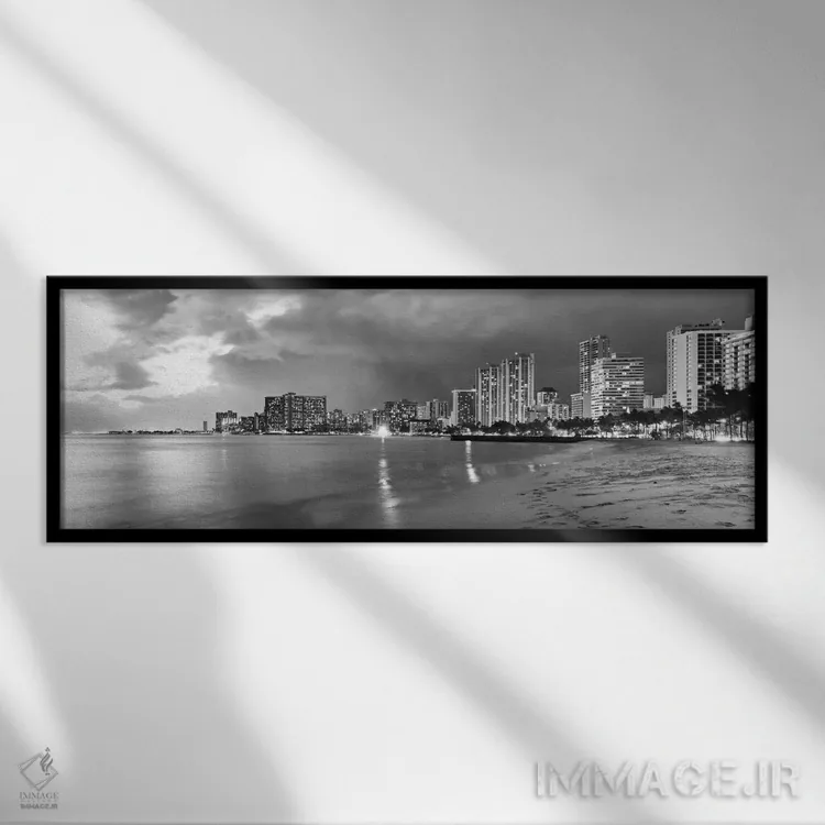 تابلو منظرهٔ گستردهٔ آسماننمای هونولولو (سیاه و سفید) اثر هنرمند ناشناس