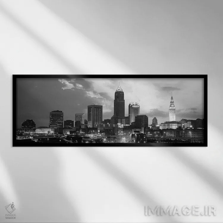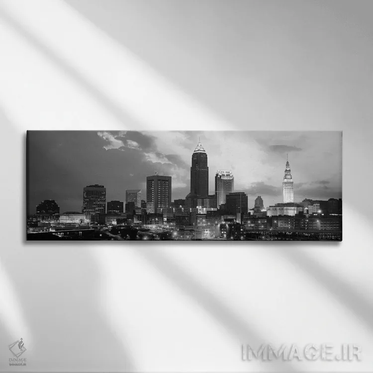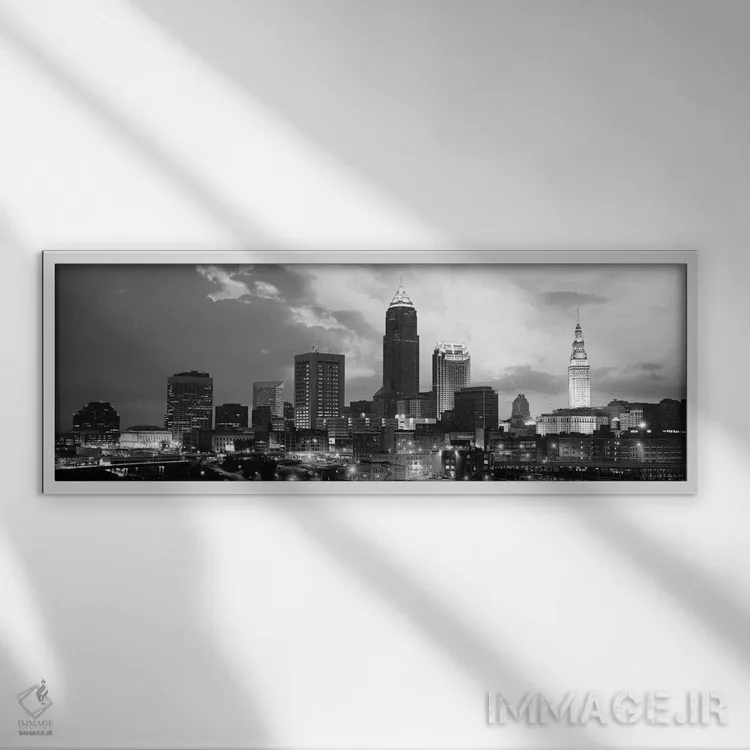 تابلو منظرهٔ گستردهٔ آسماننمای کلیولند (سیاه و سفید) اثر هنرمند ناشناس