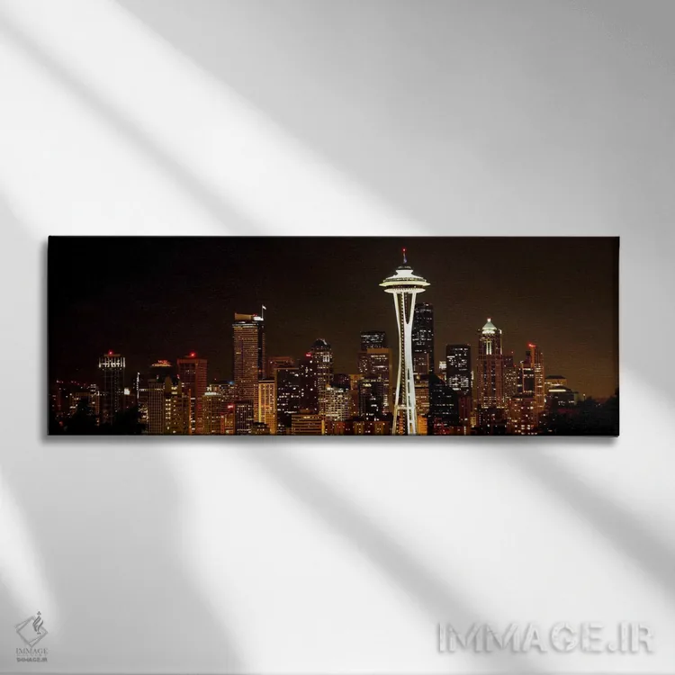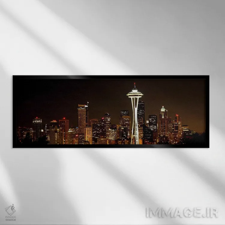 تابلو منظرهٔ گستردهٔ آسماننمای سیاتل (شب) اثر هنرمند ناشناس