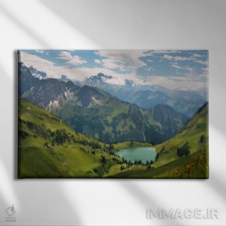 تابلو منظرهٔ کوهستانی آلپ سوئیس در بهار اثر هنرمند ناشناس