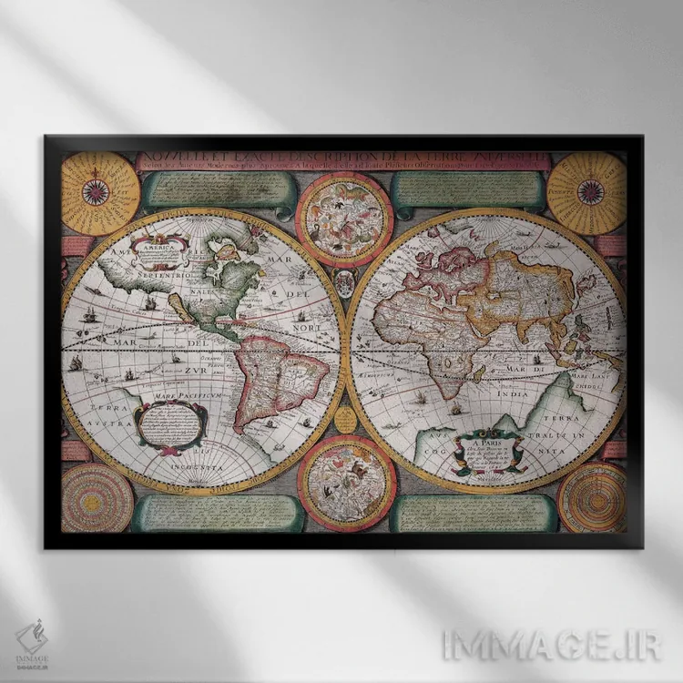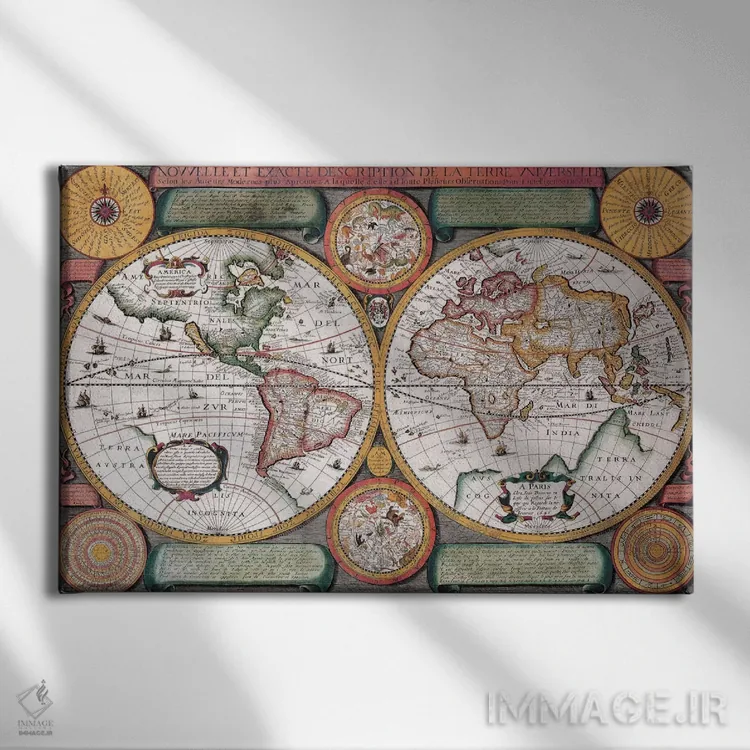 تابلو نقشهٔ قدیمی، تِر یونیورسل، ۱۵۹۴ (Terre Universelle: نام فرانسوی) اثر هنرمند ناشناس