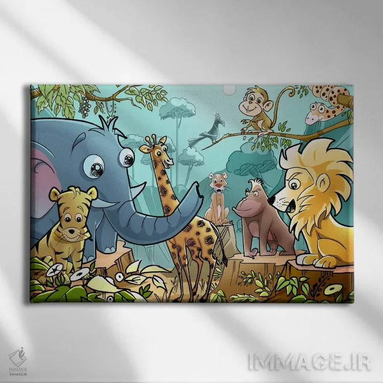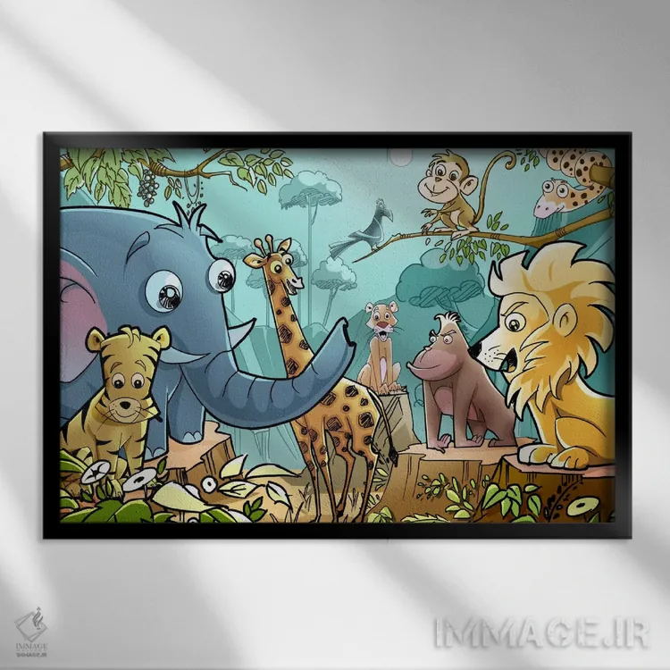 تابلو حیوانات جنگلی کارتونی اثر هنرمند ناشناس