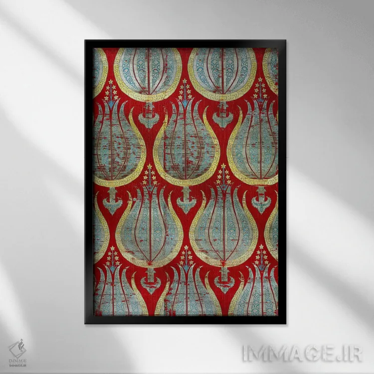 تابلو Silk & Silver Lamella Textile,لاله‌های عثمانی، منسوج ابریشمی و نقره‌ای اثر هنرمند ناشناس - نمای قاب‌دار مشکی