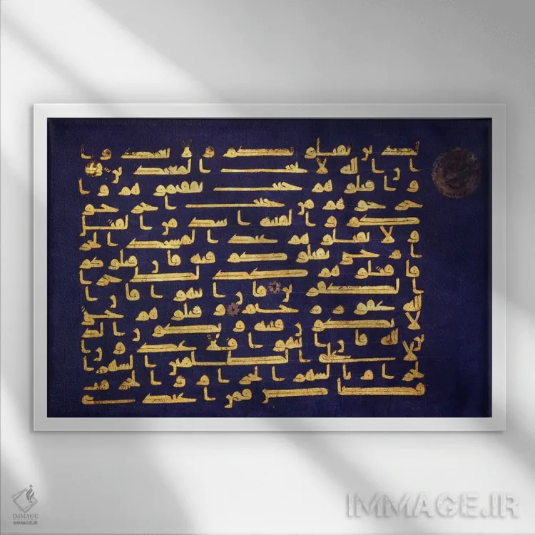 تابلو برگه پوستنوشته از قرآن به خط کوفی اثر هنرمند ناشناس