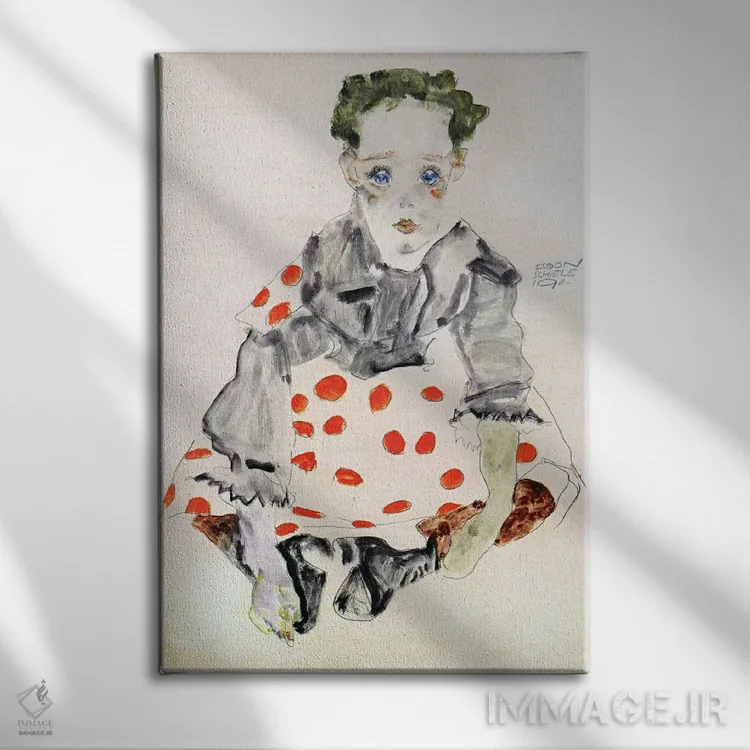 «دختر با لباس خالدار» اثرِ «اگون شیله (نقاش اتریشی)» با حالوهوای هنر فاخر کلاسیک و موضوعِ این اثر، برای پذیراییهای رسمی و دکورهای کلاسیک انتخابی شایسته است.