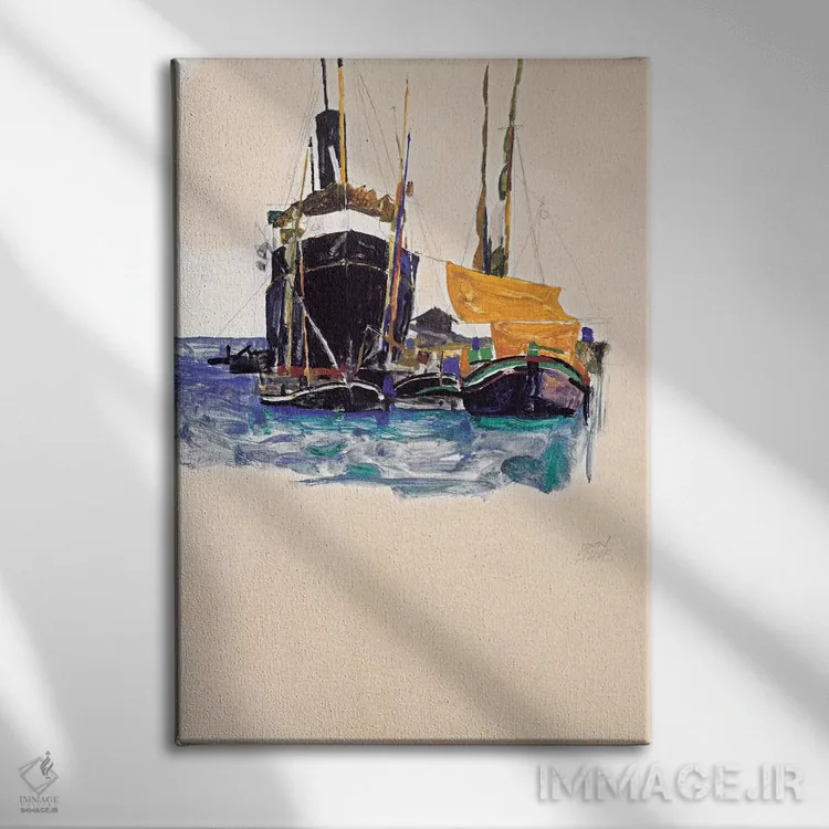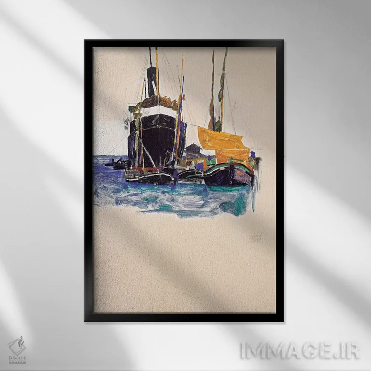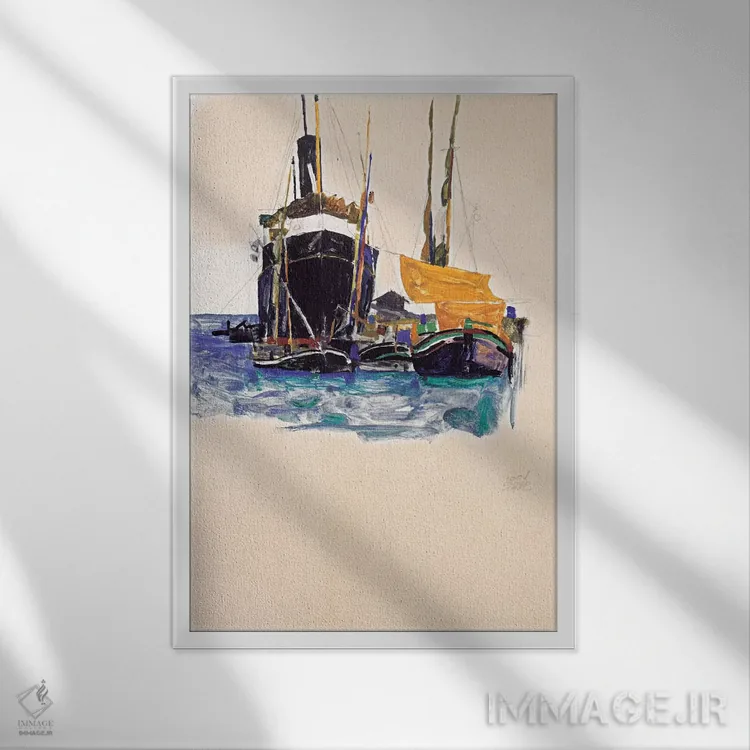 تابلو کشتیهای بخار و بادبانی در بندر تریسته اثر اگون شیله (نقاش اتریشی)