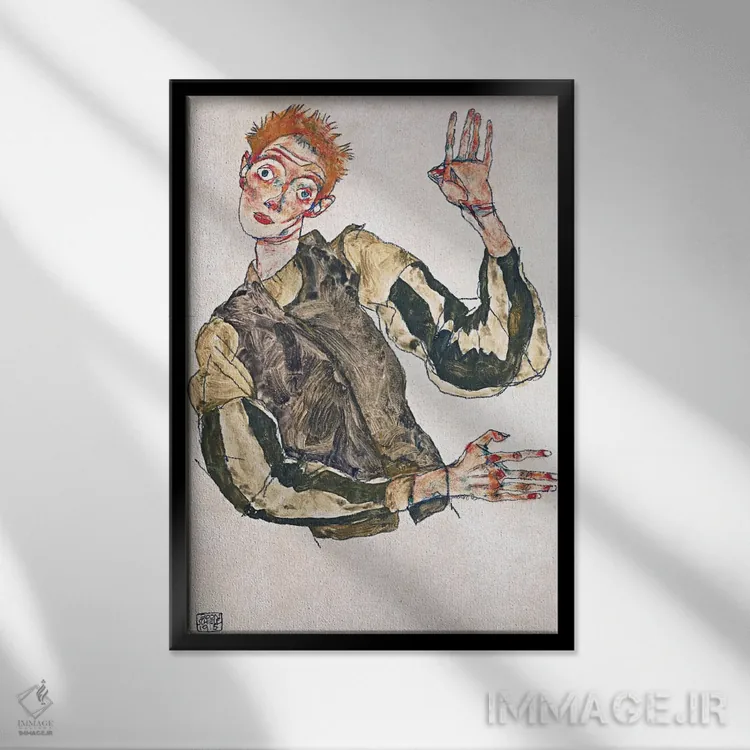 «خودنگاره با بازوبندهای راهراه» اثرِ «اگون شیله (نقاش اتریشی)» یک انتخاب کلاسیک و مرتب است؛ موضوعِ این اثر در آن برای دکورهای لوکس و چوبی عالی مینشیند.