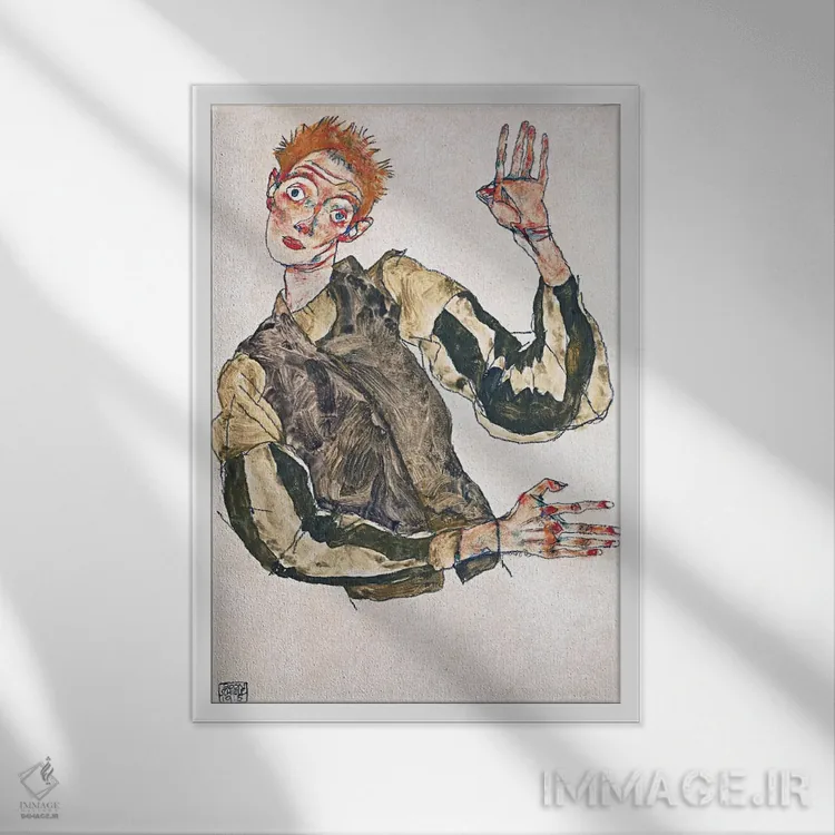 تابلو خودنگاره با بازوبندهای راهراه اثر اگون شیله (نقاش اتریشی)