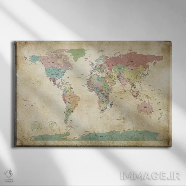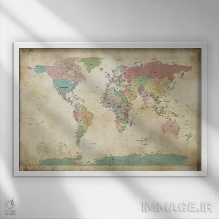 «نقشهٔ شهرهای جهان» اثرِ «مایکل تامپست» با حالوهوای تزئینیِ این اثر، فضا را روشن و مرتب میکند؛ مناسب نشیمنهای روشن و چیدمانهای مدرن.