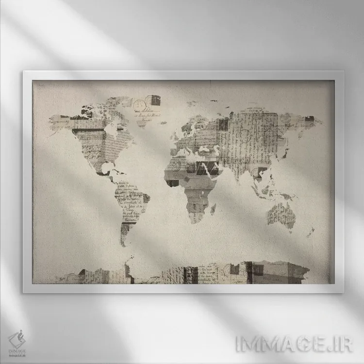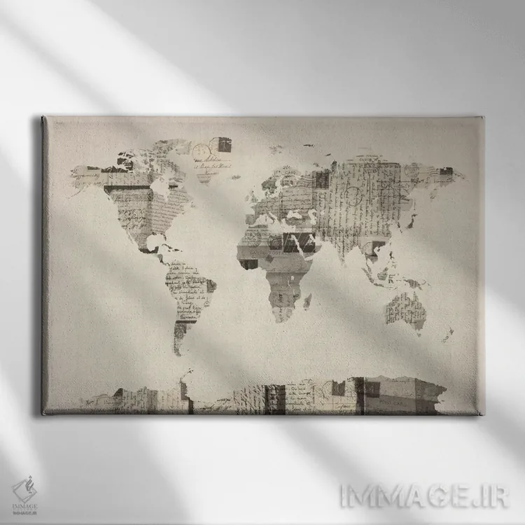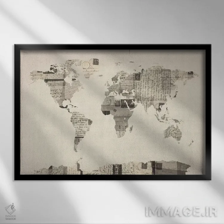 تابلو نقشهٔ جهان روی کارتپستال قدیمی اثر مایکل تامپست
