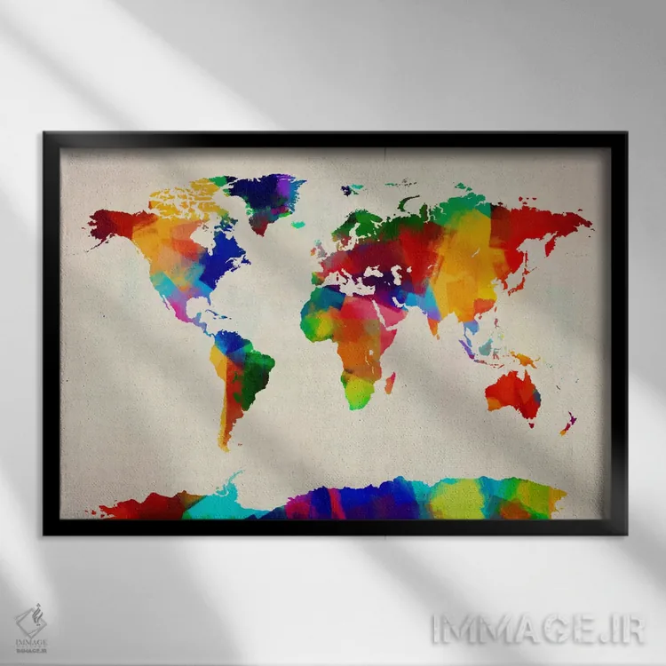 تابلو نقشهٔ جهان ۴ اثر مایکل تامپست - نمای قاب‌دار مشکی