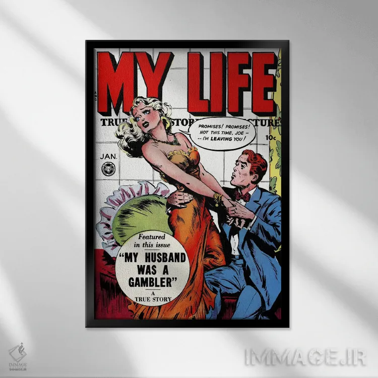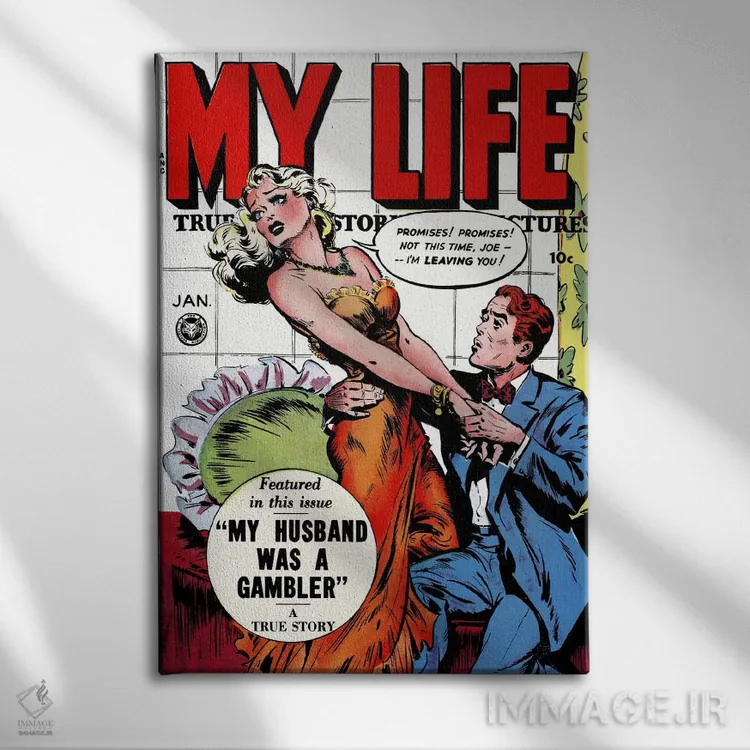 تابلو "شوهرم قمارباز بود" (کتاب کمیک زندگی من) اثر هنرمند ناشناس