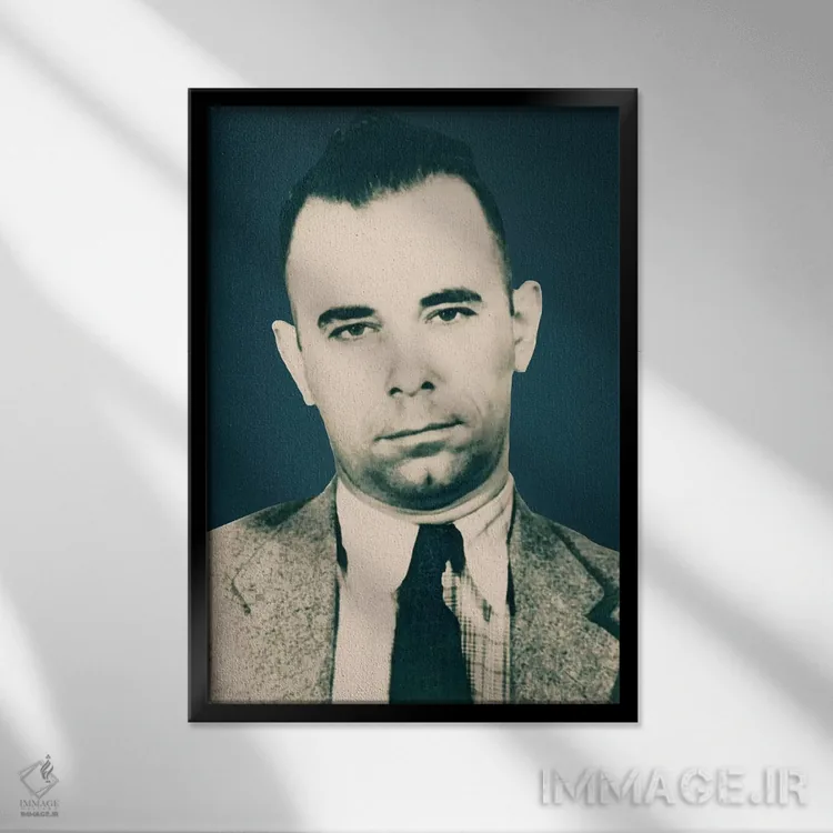 تابلو جان دیلینجر (۱۹۰۳–۱۹۳۴) – عکس بازداشت گنگستر اثر فایو بای فایو کالکتیو - نمای قاب‌دار مشکی