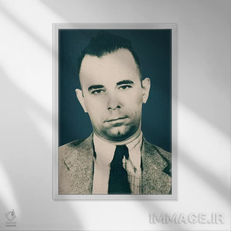 تابلو جان دیلینجر (۱۹۰۳–۱۹۳۴) – عکس بازداشت گنگستر اثر فایو بای فایو کالکتیو - نمای قاب‌دار سفید
