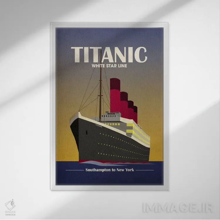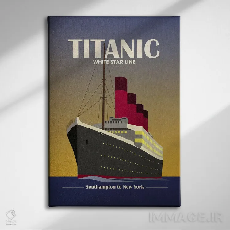 «کشتی اقیانوسپیمای تایتانیک (آرت دکو)» اثرِ «مایکل تامپست» با چاشنی هنری، حس لوکسِ هندسی و مرتب به فضا میدهد—خوب برای نشیمنهای مدرن/نیمهکلاسیک.