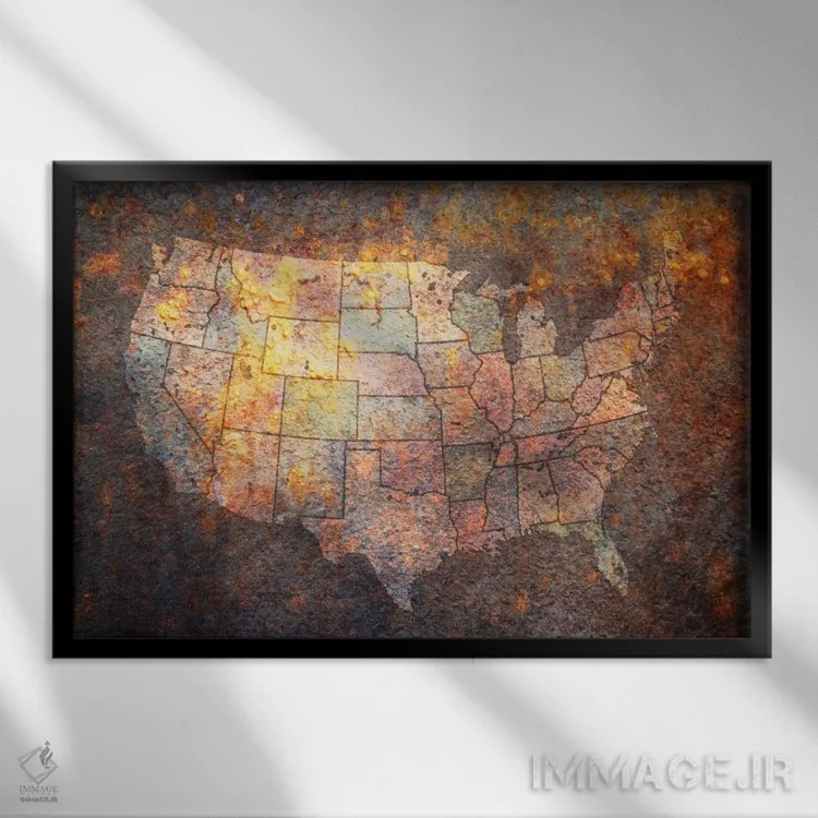 «نقشهٔ ایالات متحده آمریکا» اثرِ «مایکل تامپست» برای دفتر کار، اتاق کار یا فضای تکنولوژیمحور عالی مینشیند.