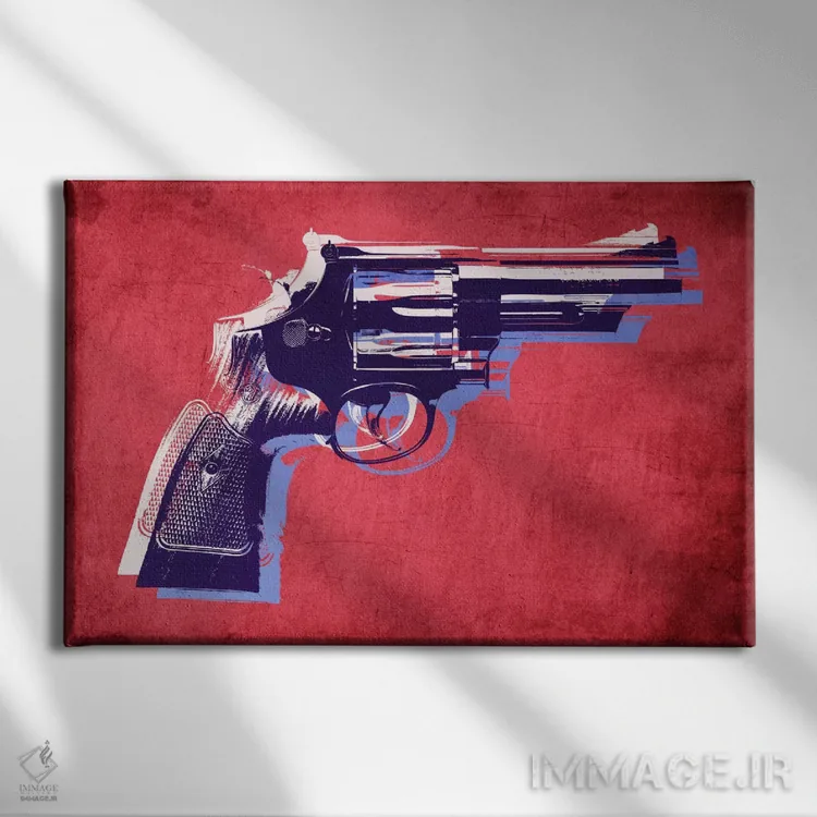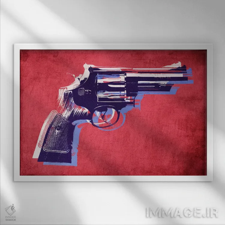 «هفتتیر مگنوم روی زمینه قرمز» اثرِ «مایکل تامپست» با حالوهوای این اثر، برای اتاق کار، استودیو یا خانههای سبک مدرن پیشنهاد میشود.