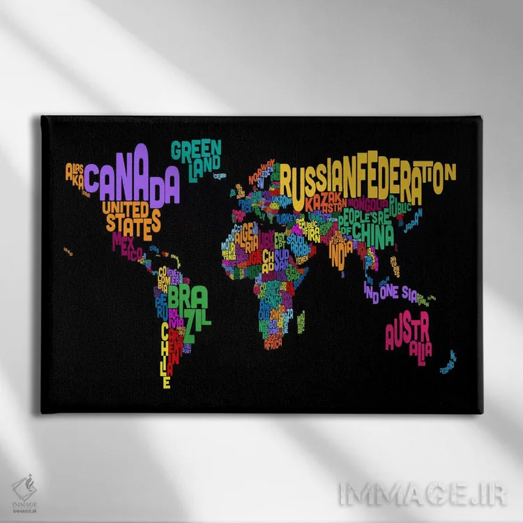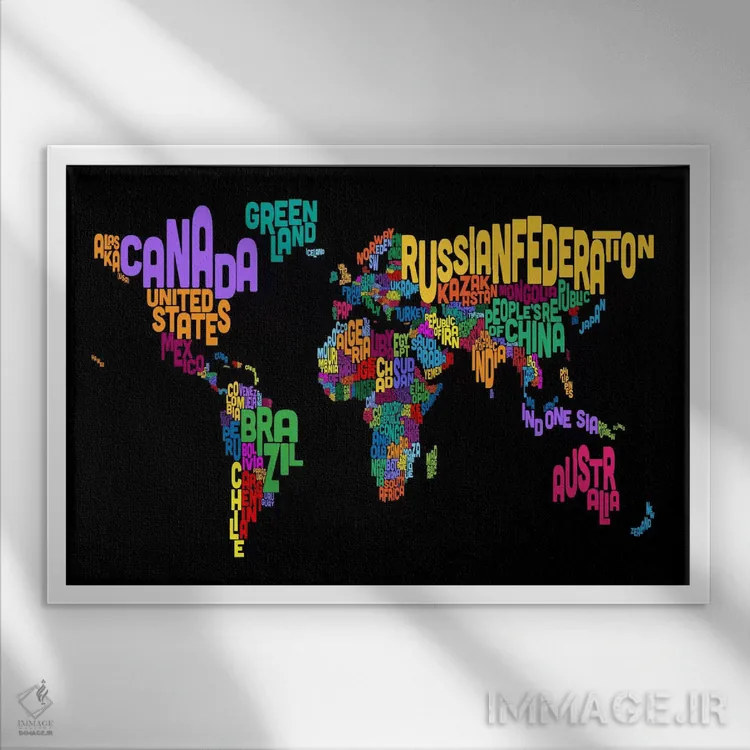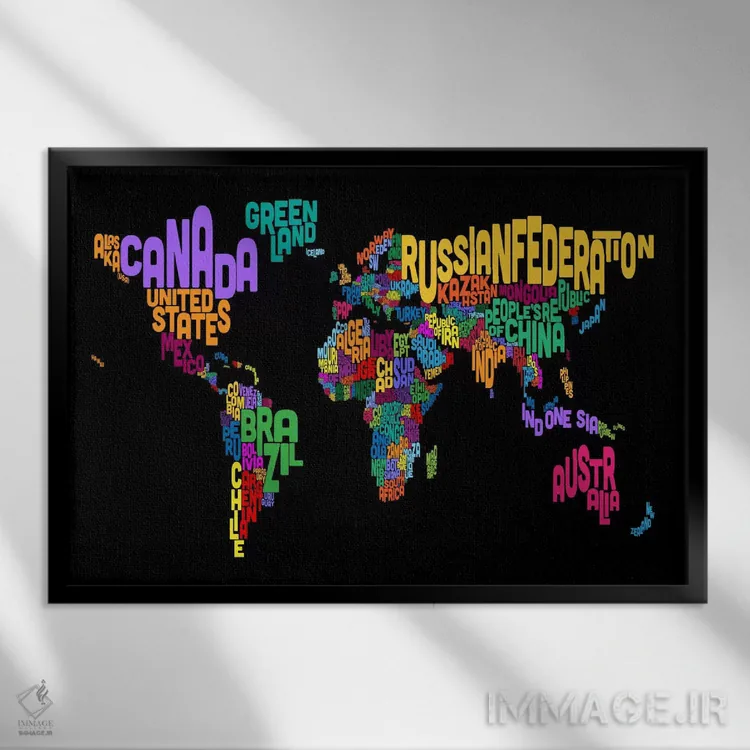تابلو نقشهٔ تایپوگرافی جهان ۲ (مشکی) اثر مایکل تامپست