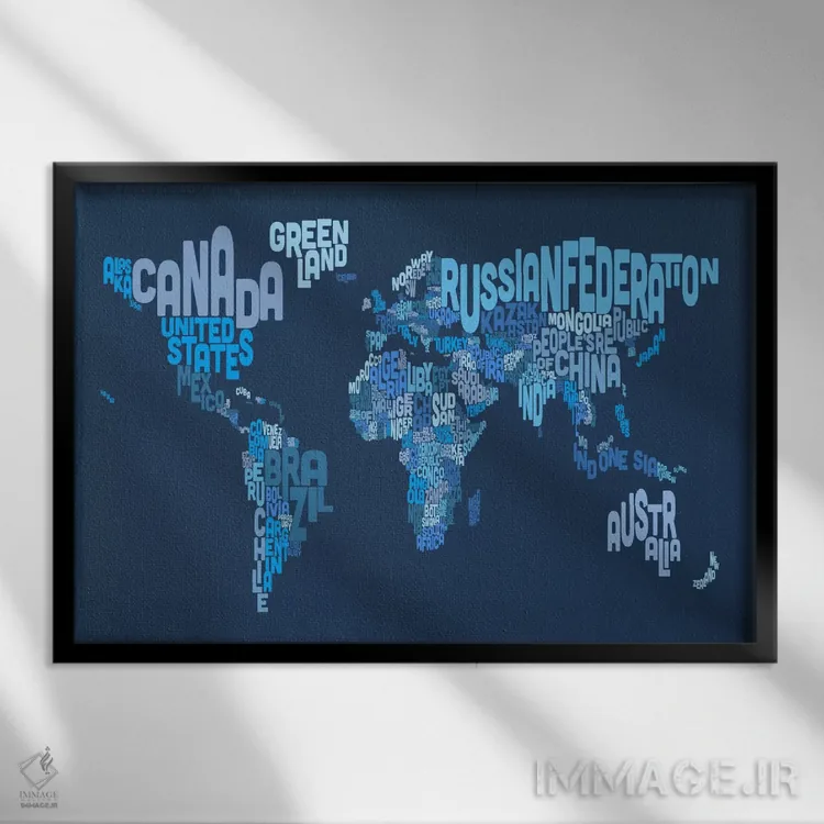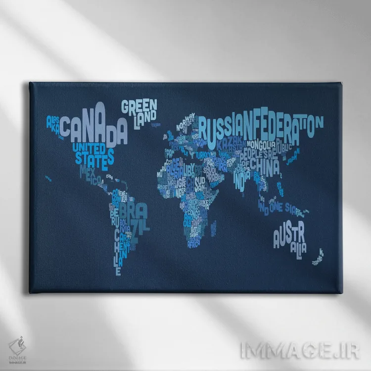 در «نقشهٔ تایپوگرافی جهان ۴ (آبی)» اثرِ «مایکل تامپست»، رنگ و فرم نقش اصلی را دارند؛ انتخابی خوب برای فضاهای امروزی و دیوارهای مینیمال.