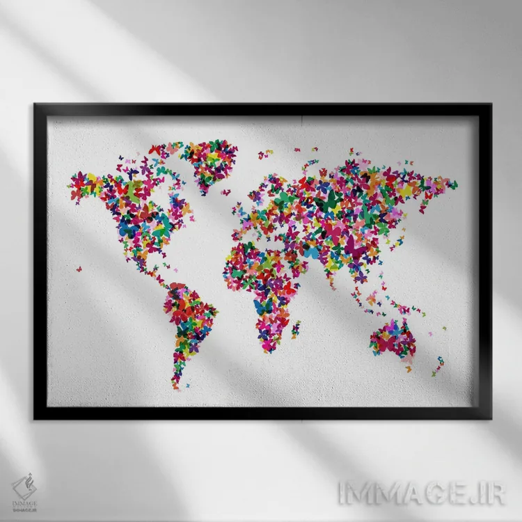 تابلو نقشهٔ جهان با پروانه‌ها اثر مایکل تامپست - نمای پرسپکتیو محصول