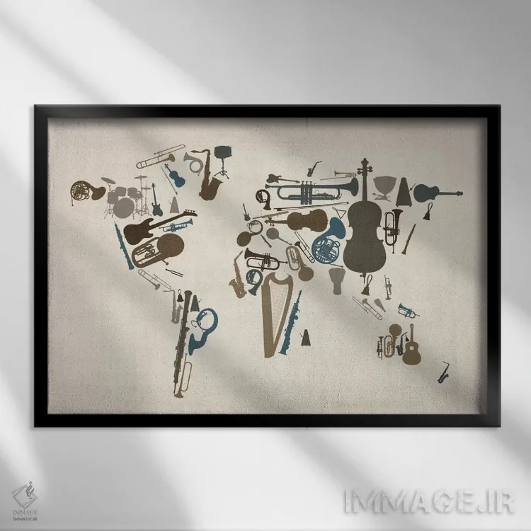 تابلو نقشهٔ جهان با سازهای موسیقی اثر مایکل تامپست