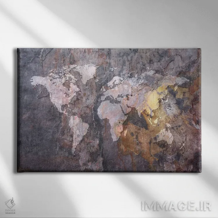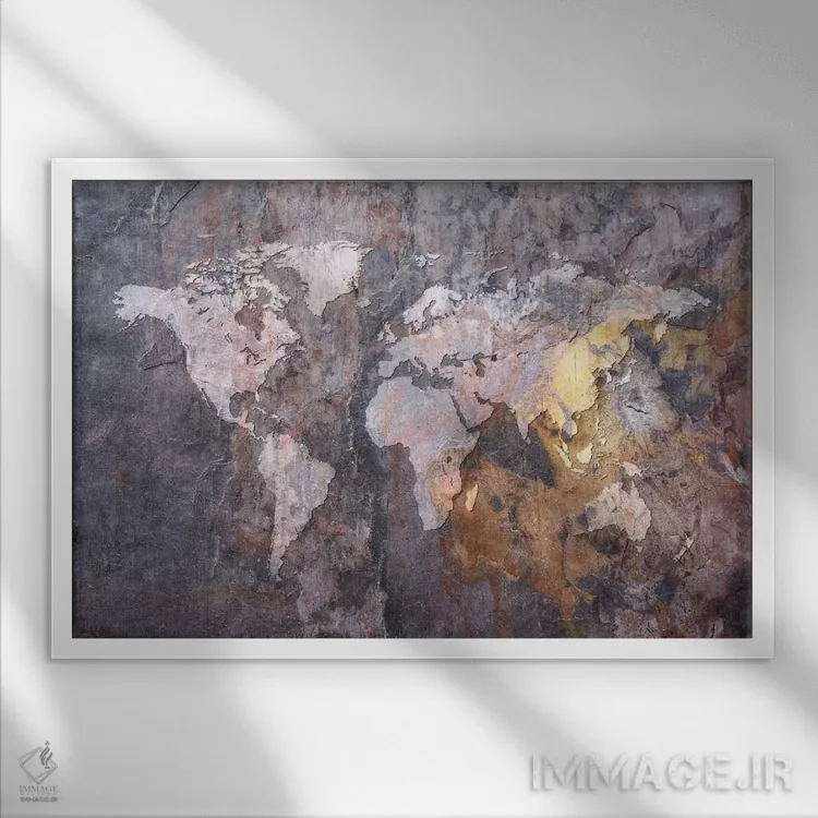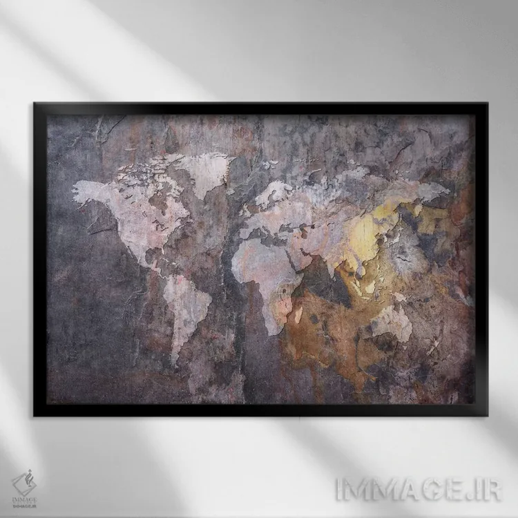 «نقشهٔ جهان بر زمینه سنگی» اثرِ «مایکل تامپست» یک پیشنهاد حرفهای برای اتاق کار یا نشیمنهای مدرن است؛ چون هم انرژی دارد هم کنترلشده است.