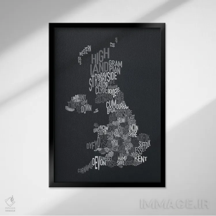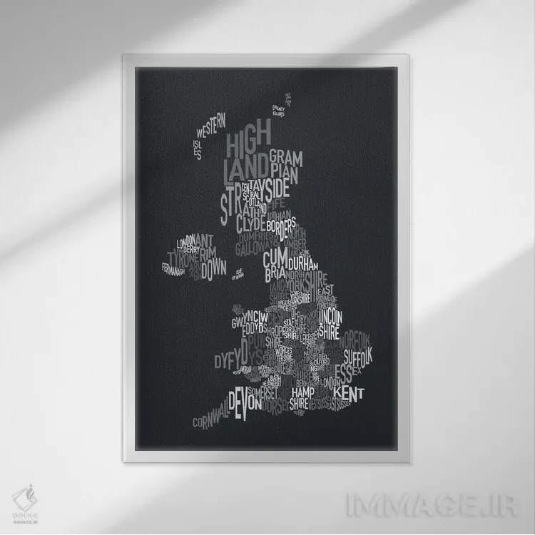 تابلو نقشهٔ متنی شهرستانهای بریتانیا ۲ اثر مایکل تامپست