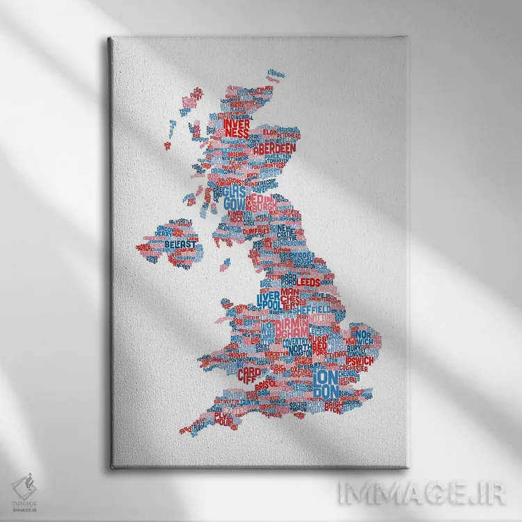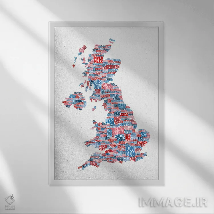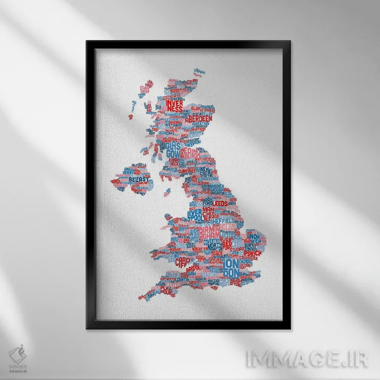 تابلو نقشهٔ متنی شهرهای بریتانیا اثر مایکل تامپست