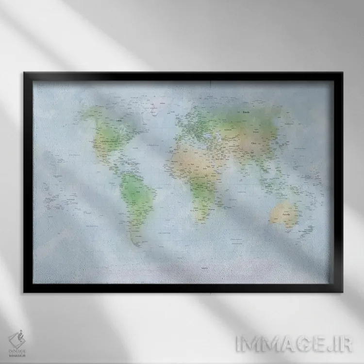 تابلو نقشهٔ جهان ۳ اثر مایکل تامپست - نمای قاب‌دار مشکی