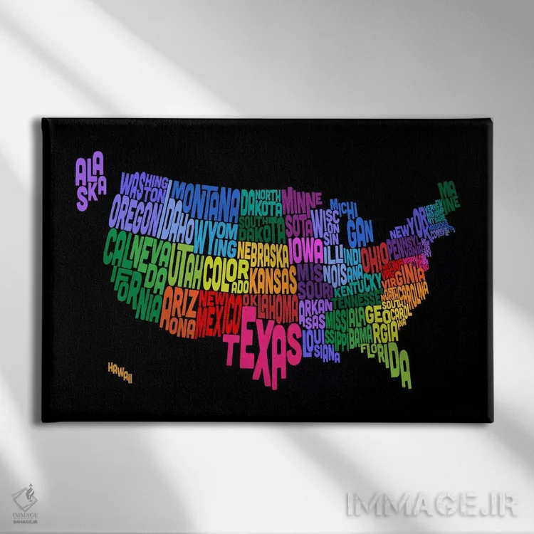 تابلو نقشهٔ تایپوگرافیک ایالتهای آمریکا III اثر مایکل تامپست
