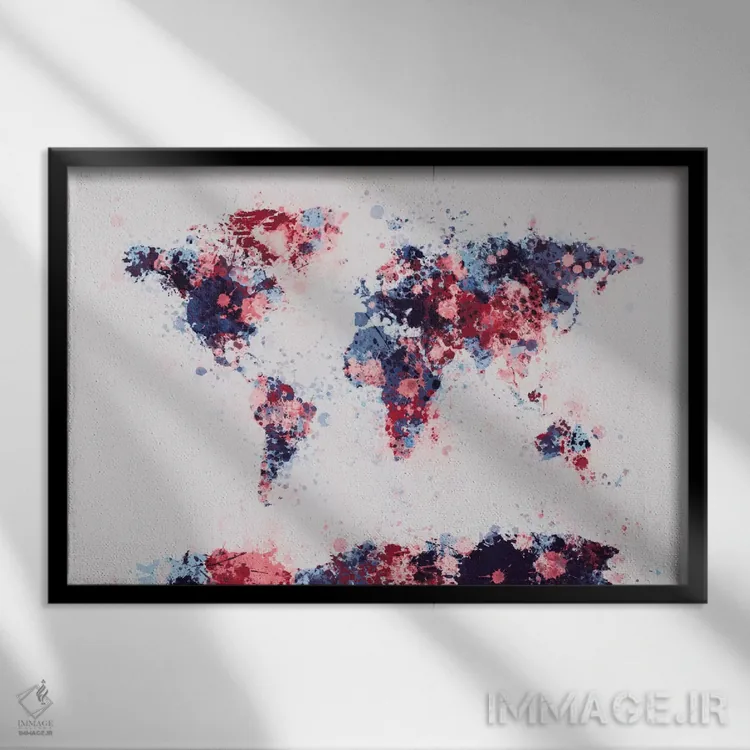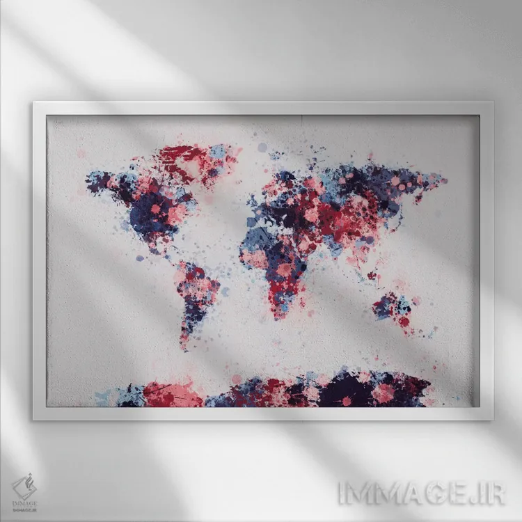 تابلو نقشهٔ جهان با قطرههای رنگ II اثر مایکل تامپست