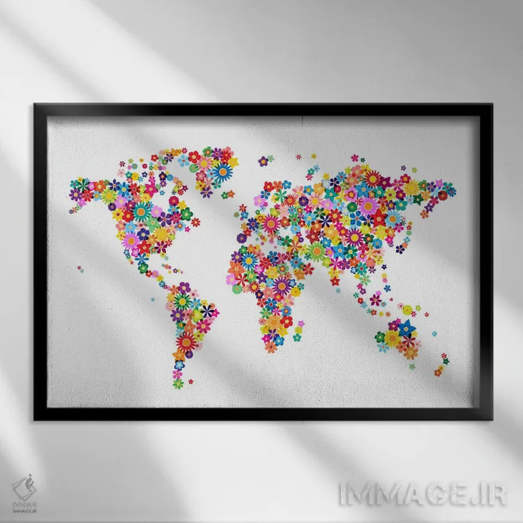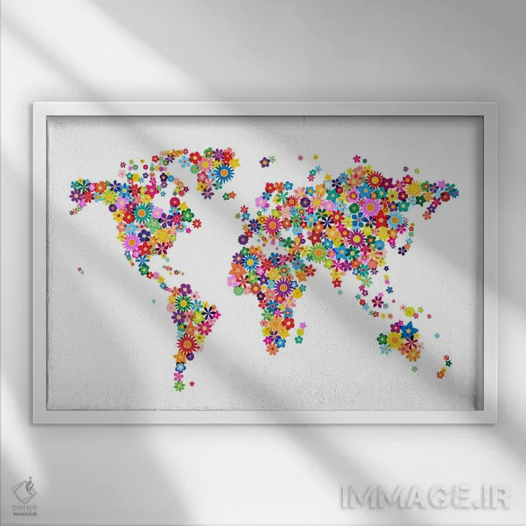 تابلو انتزاعی نقشه جهان با گل ها اثر مایکل تامپست
