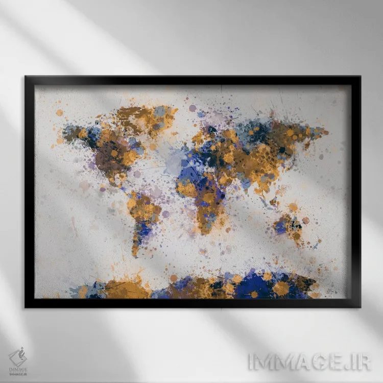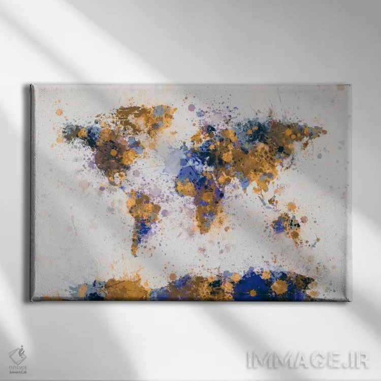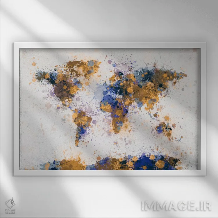 «نقشهٔ جهان با قطرههای رنگ IV» اثرِ «مایکل تامپست» با رویکرد هنری، برای فضاهای مدرن و مینیمال یک نقطهکانونیِ هنری و مرتب میسازد.