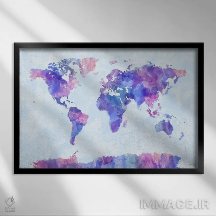 اگر دنبال یک قابِ انتزاعیِ شیک هستی، «نقشهٔ جهان با پاشش رنگ V» اثرِ «مایکل تامپست» با زبان هنری انتخابی مطمئن است.